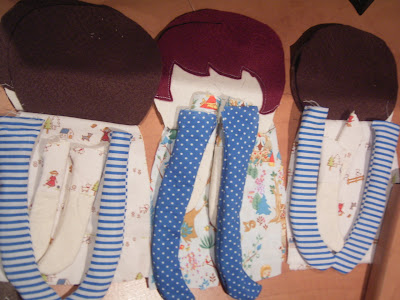 I allocated the travel time to the twins' party across the city for final sewing together of gaps and stitching on the faces. But um I forgot to account for time to get car sick. Blag. Imagine that, getting car sick for the first time in your life because you're desperately trying to finish off the last minute hand made pressies for the twins you thought were only one child just a matter of hours before. Arrggg.